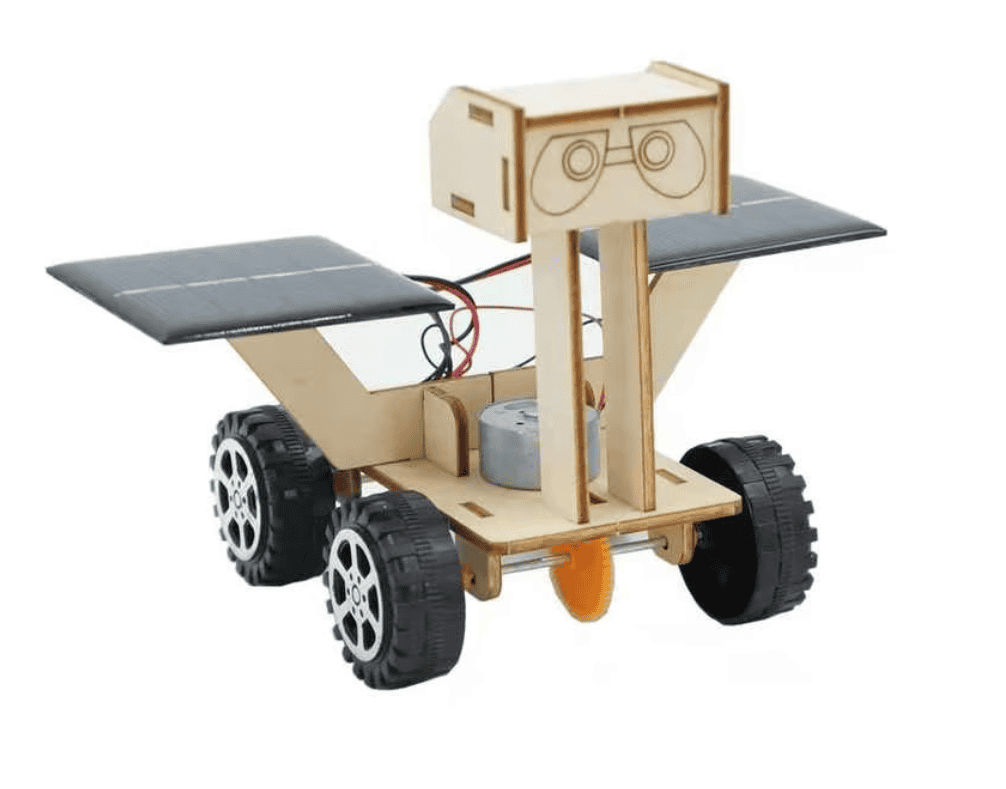 Este un kit DYI ce combină robotică, energie solară și puțină inginerie. Dimensiunile sunt compacte – 15 x 15 x 10 cm. Kitul este compus din două panouri solare pentru alimentare, motor electric pentru propulsie, roți din plastic și componente de fixare și cablurile electrice pentru conexiuni.