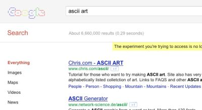 Căutând ASCII Art pe Google.com, veți observa cum doodle-ul se schimbă în unul special dedicat acestui subiect.