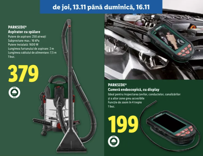 Este recomandată celor ce doresc să repare diferite lucruri prin locuință, iar o cameră de genul permite inspectarea țevilor, conductelor, canalizărilor, dar și în domeniul auto poți folosi un astfel de gadget. Are display și funcție de zoom în 4 trepte. Mai găsiți și un aspirator cu spălare de la Parkside cu consum de energie de până la 1600W, furtun de aspirare de 2 metri și lungime a cablului de alimentare de…, 7.5 metri.