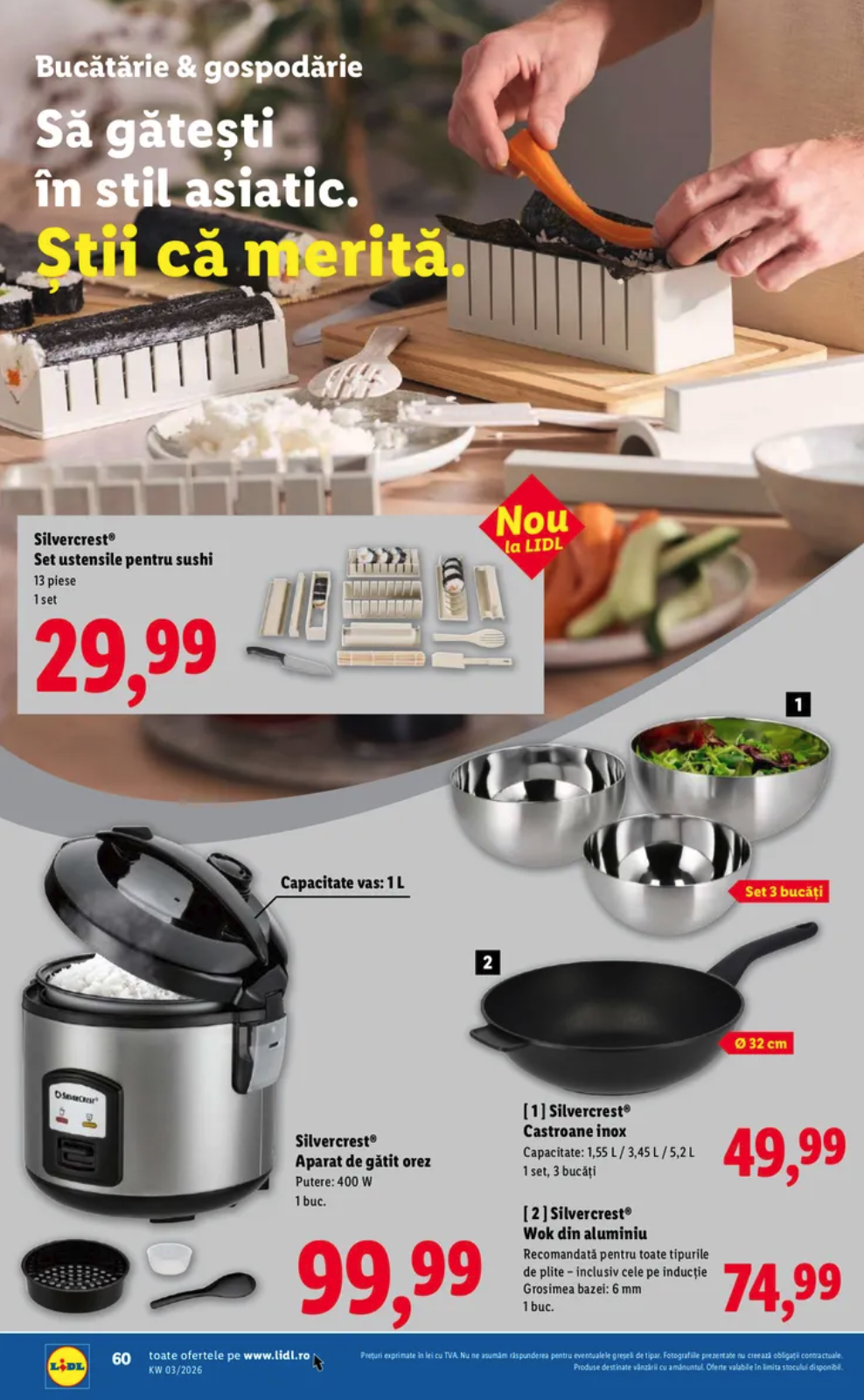 Văd că LIDL se aventurează și în alte domenii, iar mai sus găsiți și un set de ustensile pentru sushi, dar și aparatul de gătit orez Silvercrest cu capacitate a vasului de 1 litru.