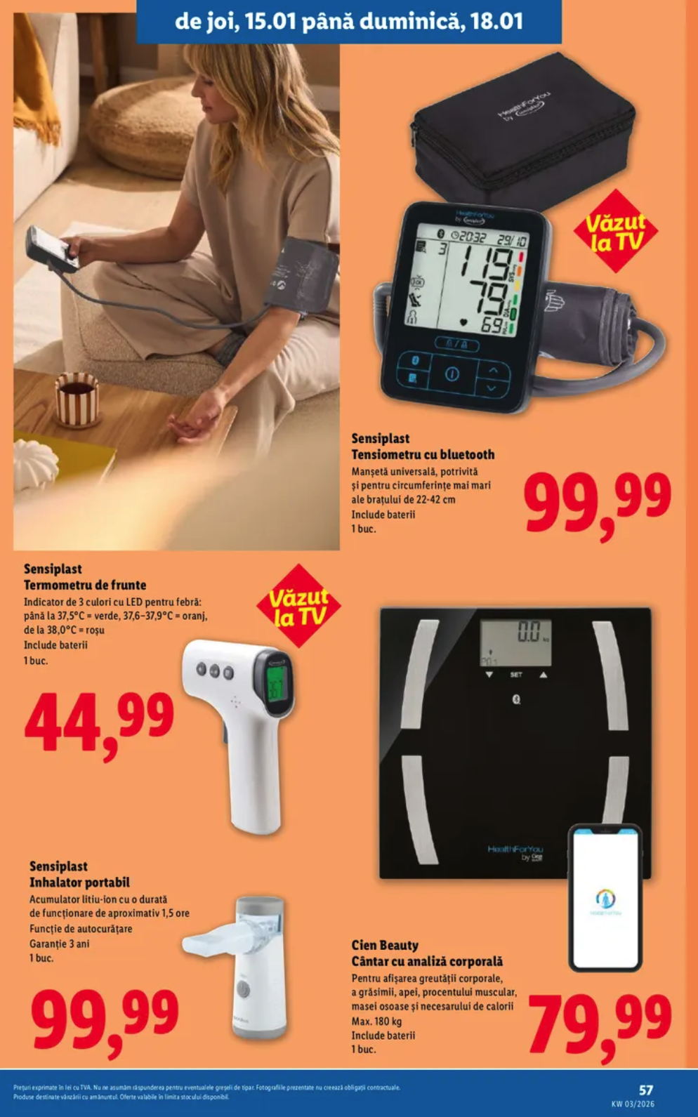 LIDL a introdus în catalogul său și un inhalator portabil cu funcție de autocurățare, iar tensiometrul cu bluetooth are manșetă universală ce se potrivește pe circumferințe ale brașului între 22 – 42 cm, iar cântarul cu analiză corporașă afișează nivelul de grăsime, apă, procentul muscular, masa osoasă și necesarul de calorii.