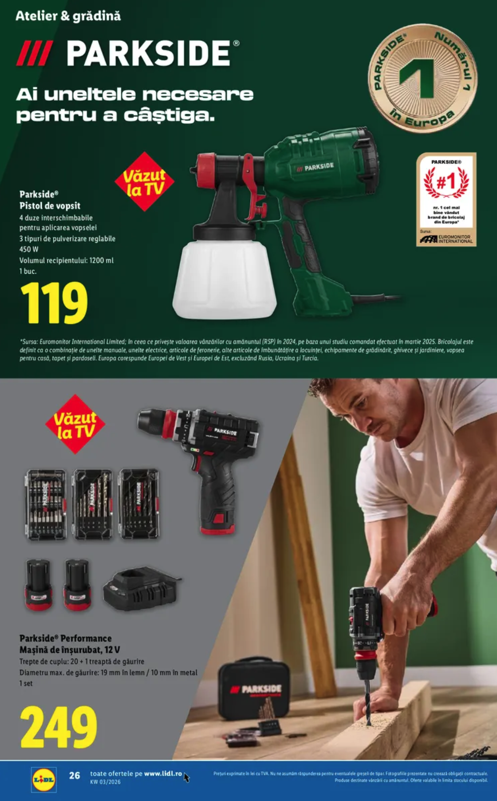 Sunt și unelte pentru casă la LIDL, de la un pistol de vopsit cu 4 duze interschimbabile și consum de energie de maxim 450W. Mașina de înșurubat are și funcție de găurire – 19 mm în lemn și 10 mm în metal.