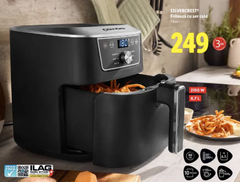 Consumul de energie ajunge până la 2150W, temperaturile sunt cuprinse între 60 – 200 grade Celsius, iar prețul său este principalul său punct pro, pe lângă garanția extinsă pe 3 ani. Bonul poate fi înregistrat în aplicația LIDL Plus spre a avea la îndemână garanția amintită (Android / iOS).