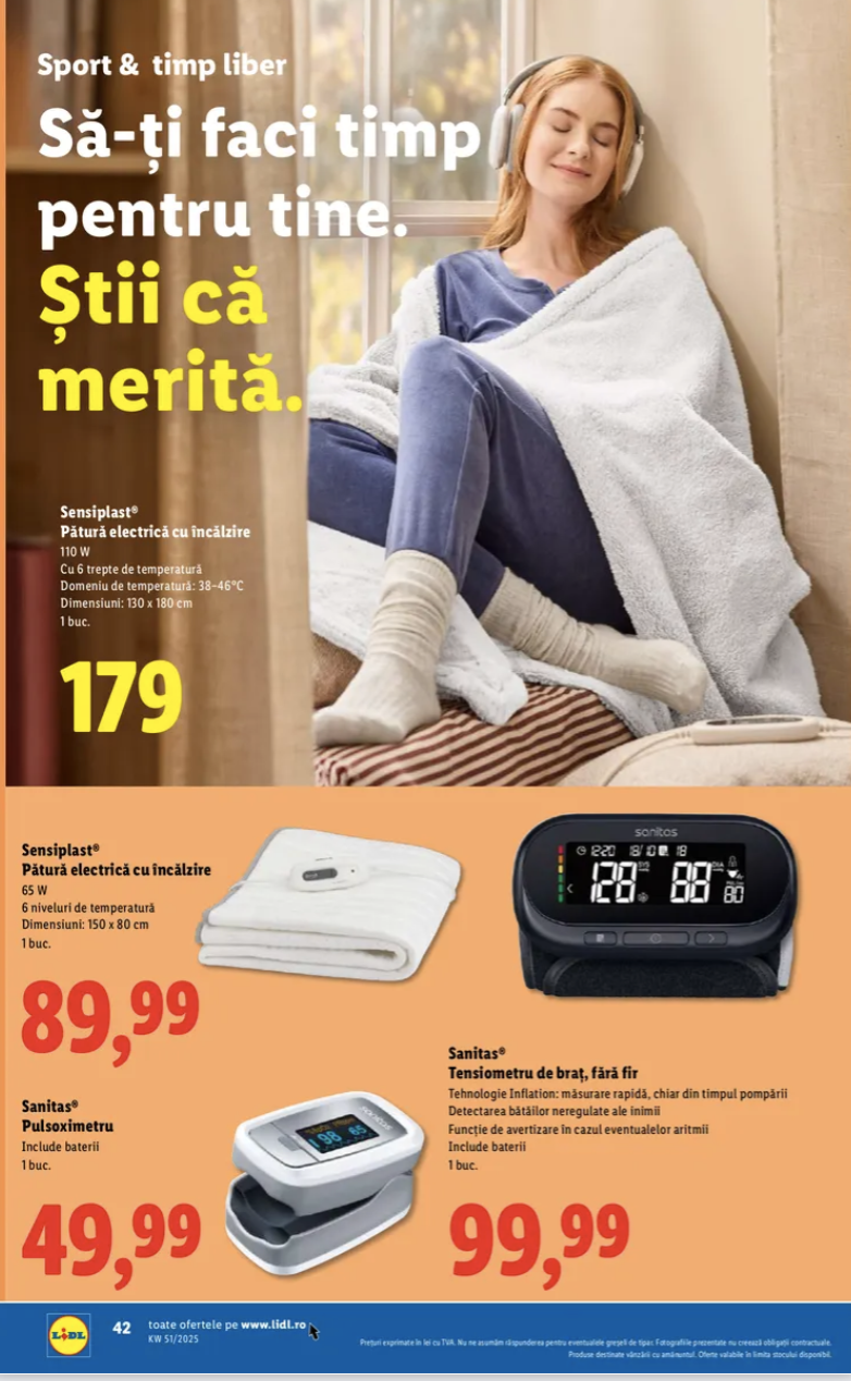 Alte produse de sezon în catalogul LIDL ce este activ în această săptămână, de la o pătură electrică și până la un tensiometru de braț cu funcție de avertizare în cazul aritmiilor. Mai este și un pulsoximetru ce include bateriile necesare.