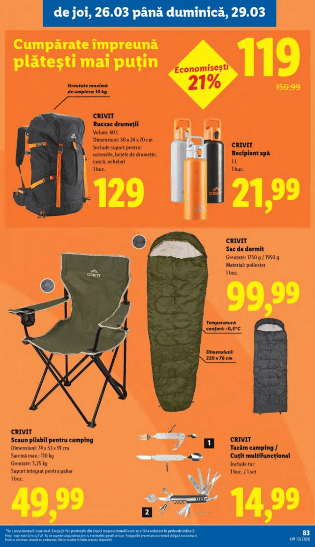 Au adus de la scaun pliabil și sac de dormit, până la tacâm camping și cuțit multifuncțional, rucsac de drumeții și diferite recipiente pentru apă.