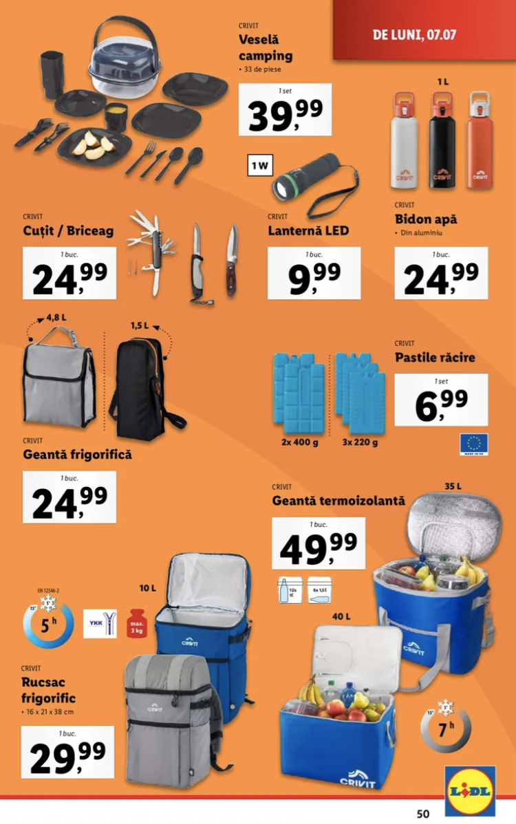 Au listat tot felul de produse pentru camping, de la veselă special gândită pentru asta și până la modele de genți termoizolante, rucsac frigorific, pastile de răcire, bidon de apă etc.