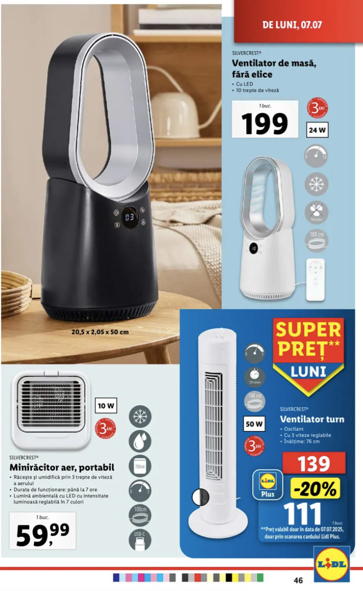 Mâine vom avea 39 de grade Celsius la umbră și cred că vom căuta un loc cât mai răcoros, iar dispozitive precum cele de mai sus ar putea ajuta. Ventilatorul fără elice are 10 trepte de viteză și consum de energie de maxim 24W. Mini răcitorul portabil este mai degrabă o jucărie, iar ventilatorul turn nu cred că are un impact prea mare, la temperaturile amintite.