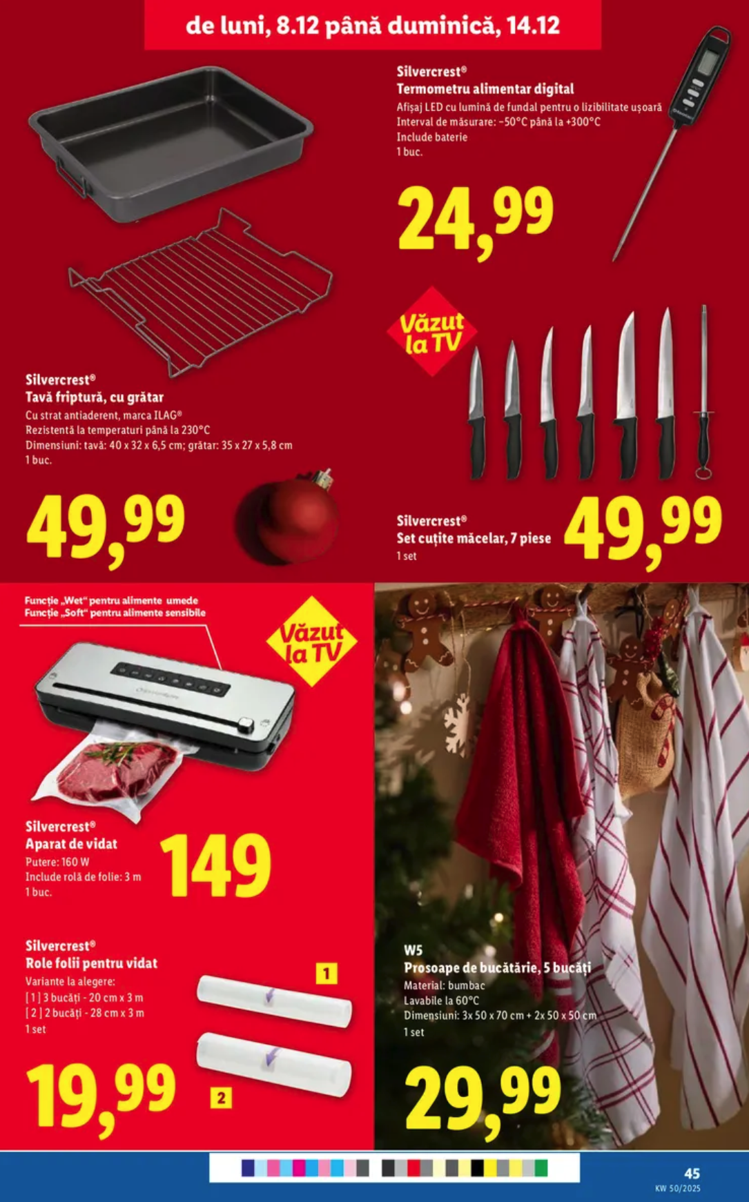 Au adus un aparat de vidat pentru alimente, dar și un termometru digital ce-l puteți folosi la diverse preparate. Intervalul de măsurare este cuprins între – 50 grade Celsius și 300 grade Celsius.