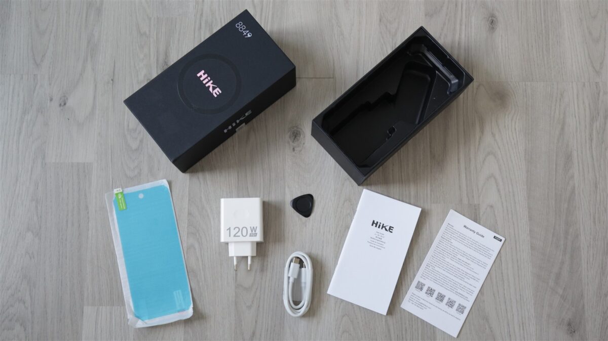 Eu am primit unitatea de review direct de la 8849, iar cutia a venit sigilată. Înăuntru, pe lângă smartphone-ul propriu-zis, mai este o folie de protecție pentru ecran (o alta este gata aplicată), încărcător la 120W cu port USB-C, cablu cu mufe USB-C la ambele capete, ghid al utilizatorului și certificat de garanție.