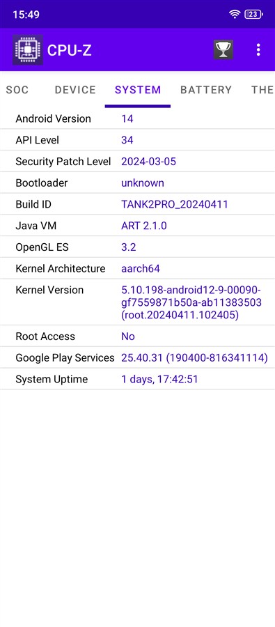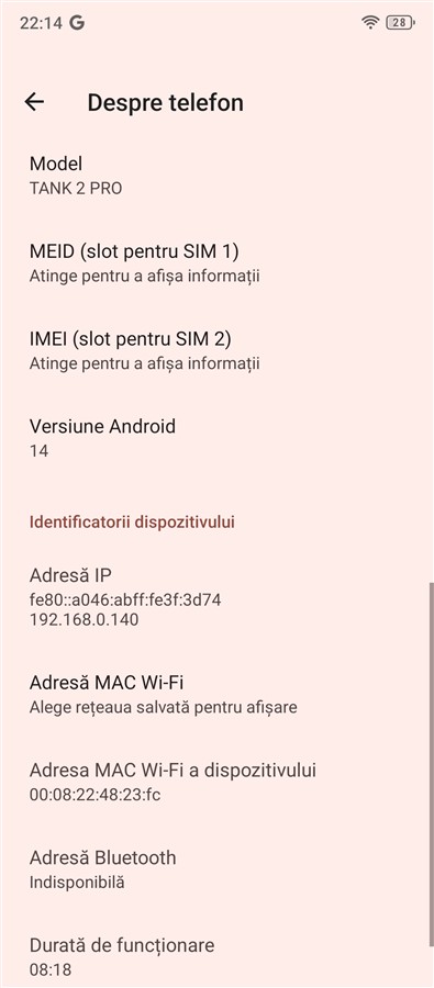 Interfața Android 14 + Android 15 pe 8849 Hike: