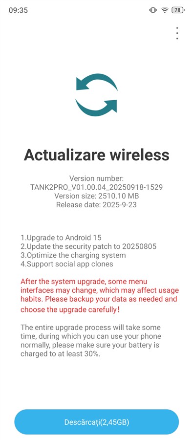 Din punct de vedere software, când am primit telefonul acesta rula Android 14, dar acum circa o săptămână a venit un update masiv, care a trecut sistemul la Android 15. Atât ediția 14, cât și Android 15 au păstrat o interfață nativă a sistemului de operare de la Google, fără intervenții la nivel de design și nici ca funcționalități suplimentare.