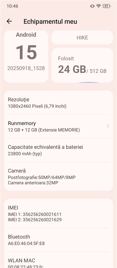 Aici mi se pare că a mai fost făcut un compromis, aparte de cel cu ecranul. Doar în dreptul procesorului, nu ca memorie. Chipset-ul MediaTek Helio G200 este unul pe care îl găsesc demn de segmentul entry-level, nu de cel mid-range. Pe de altă parte, așa cum am spus, ca memorie 8849 Hike nu rămâne deloc în urmă, cu 12 GB de RAM și 512 GB spațiu intern de stocare este la nivel flagship din punct de vedere cantitate, chiar dacă ca performanță nu sunt cele mai rapide. Merită un plus prezența unui slot dedicat cardurilor de memorie microSD de până la 2TB.
