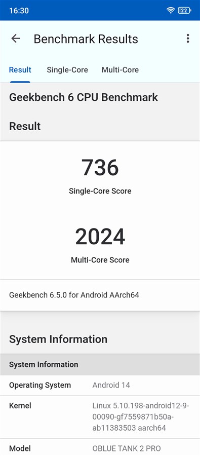 | Geekbench 6 v6.5.0 CPU Single-Core CPU Multi-Core | 736 puncte 2024 puncte |