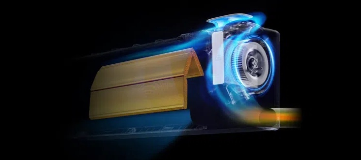 Un al treilea aspect care mi-a atras atenția este cel al fluxului de aer, care poate fi unul puternic, când ai nevoie de răcire / încălzire rapidă, sau unul mai „blând”. Astfel, pentru o dispersie a fluxului de aer, acesta poate fi trecut printr-un ansamblu de 13 pale microperforate, care în total au 1222 de micro orificii.