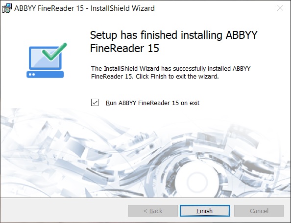 Instalarea ABBYY FineReader 15 se face după descărcarea versiunii Trial de pe site-ul oficial ABBYY. Pașii ulteriori sunt similari cu cei ce trebuie parcurși la instalarea majorității programelor software pentru Windows.
