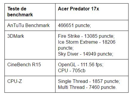 Teste de benchmark rulate pe Acer Predator 17x;