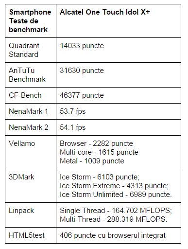 Normal că a trecut și prin câteva teste de benchmark, iar valorile obținute sunt notate în tabel.