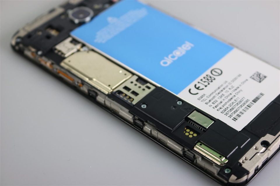 Camera de 13 Megapixeli se profilează puțin dincolo de linia generală a smartphone-ului, lateralele stânga și dreapta sunt ușor curbate și contribuie la o poziționare ergonomică a dispozitivului de 5.5 inch în mâna utilizatorului. Se oferă acces la bateria de 2960 mAh, la sloturile pentru SIM și microSD. Din păcate, bateria este fixă și trebuie demontată doar în service, dacă nu se dorește pierderea garanției. Capacul acoperă și toate cele 4 laturi ale dispozitivului, ar fi mers din partea Alcatel să ofere capace interschimbabile pentru Pop 4s, dar la o mică căutare nu am găsit astfel de accesorii în piață.