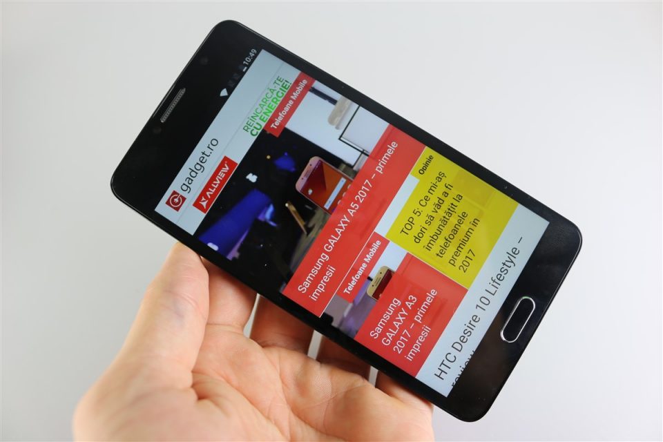 IPS de 5.5 inch cu rezoluție 1920×1080 pixeli, 401 ppi, raport display / corp de 71.3%, iar pe site-ul Alcatel nu am găsit detalii legate de sticla de protecție. Tocmai de aceea recomand din ziua 1 să fie montată o folie de protecție spre a preîntâmpina acumularea zgârieturilor fine pe ecran.