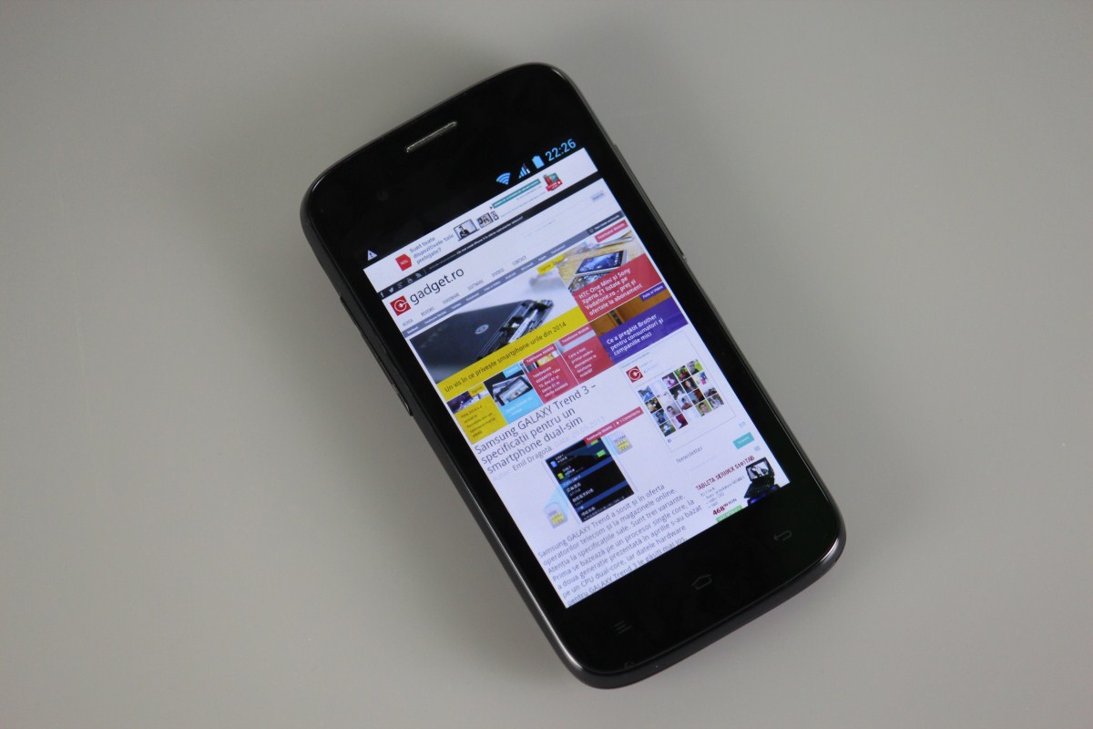 TFT LCD de 4 inch cu rezoluție 480×800 pixeli. Este printre puținele telefoane Android de sub 600 de lei care mizează pe rezoluție de 480×800 pixeli. La baza ecranului de 4 inch se află trei taste capacitive cu rol de Back, ieșire pe ecranul de start și Mai multe detalii.
