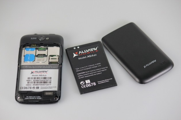În cutia cu Allview A5 Duo regăsiți și bateria de 1700 mAh, căști albe pe jack de 3.5 mm, manual de instrucțiuni pentru smartphone-ul aflat sub brand românesc, folie de protecție pentru display, certificat de garanție, codul de activare pentru Bitdefender Mobile Security.