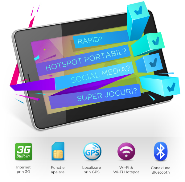 – 3G cu viteze de download de până la 7.2 Mbps, Wi-Fi b/g/n, bluetooth 2.1, microUSB, jack de 3.5 mm, GPS;