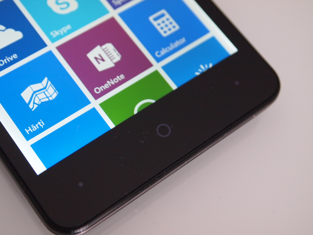 Sub ecranul de 4.7 inci sunt trei taste capacitive, iluminate, ce nu oferă prin forma lor niciun fel de informații asupra funcției pe care o îndeplinește fiecare. O să vă spun ce functii sunt indeplinite: back (înapoi), home (ieșire pe ecranul de start) și search (căutare prin motorul Bing). Ordinea descrisă de mine este de la dreapta la stânga.