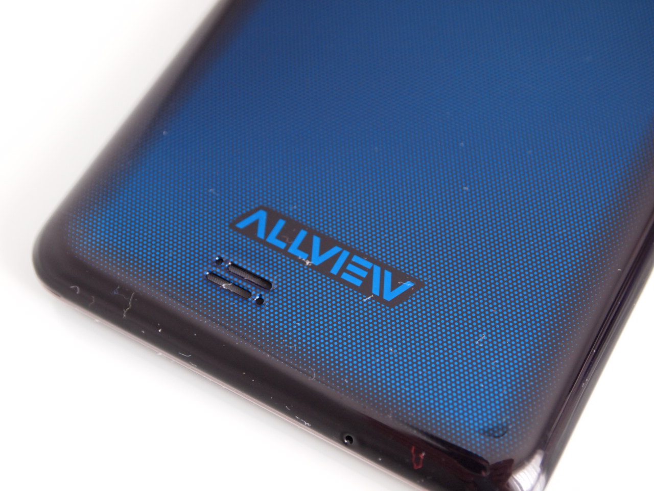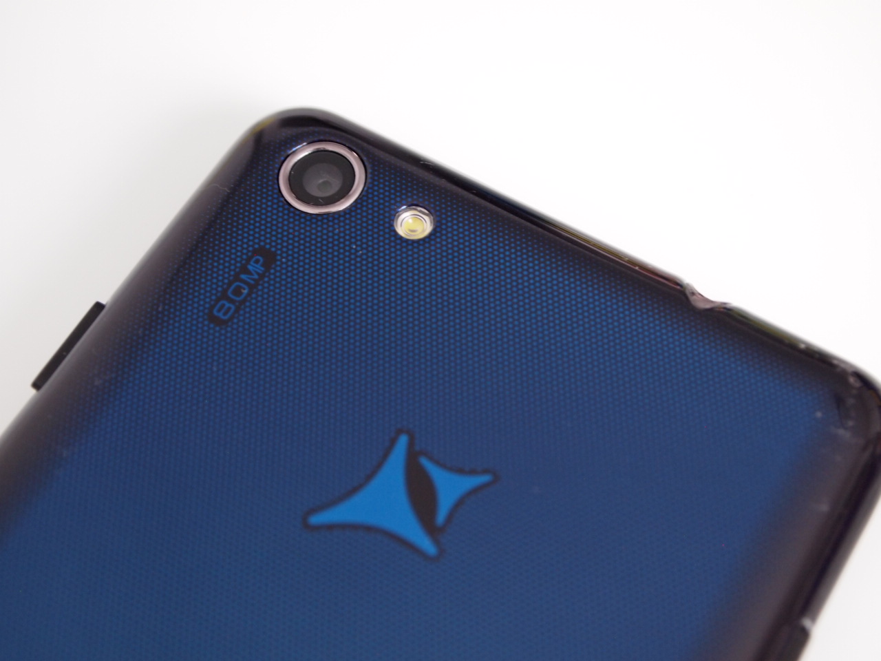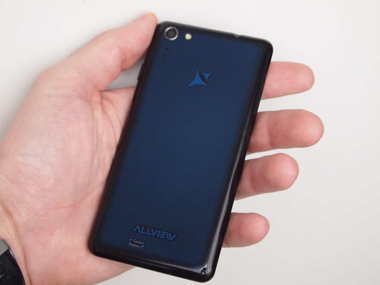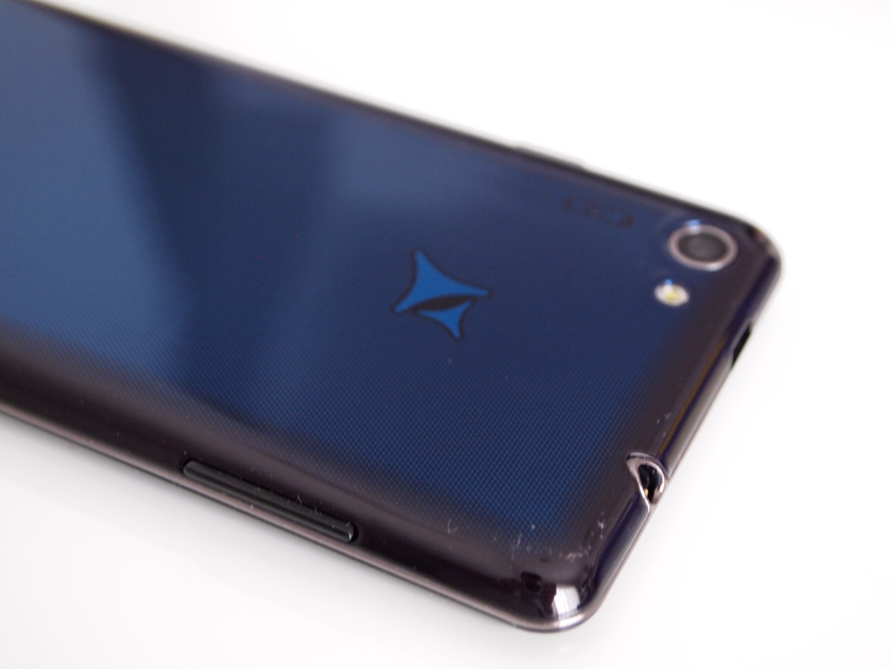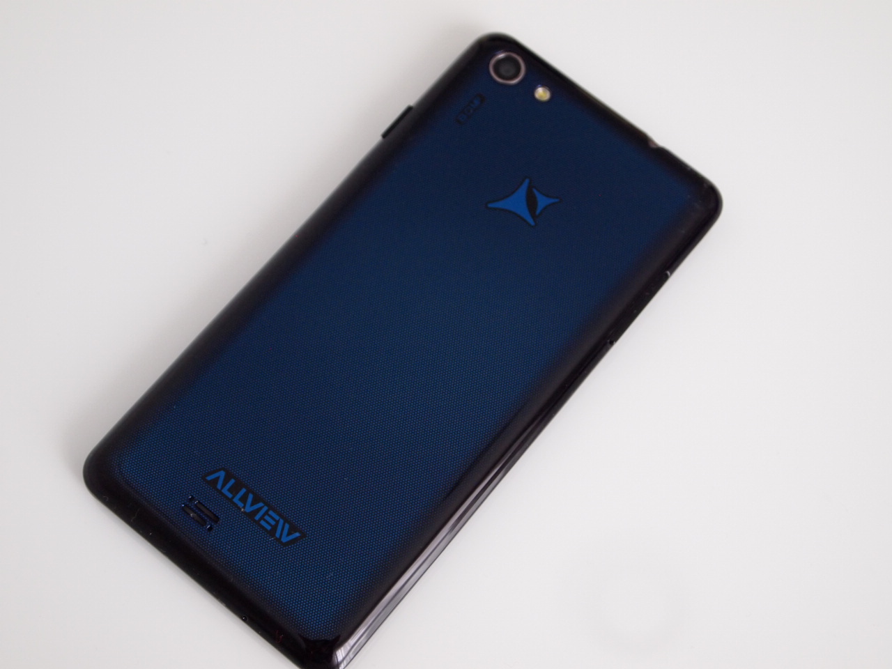Capacul spate al lui Allview Impera i este realizat dintr-un plastic lucios, de culoare albastru închis, ce prezintă și un model imprimat interesant. Acesta va ajuta la scunderea zgârieturilor, care vor veni cu siguranță. Spatele telefonului adună amprentele cu spor și nici nu oferă o aderență prea bună în palmă.
