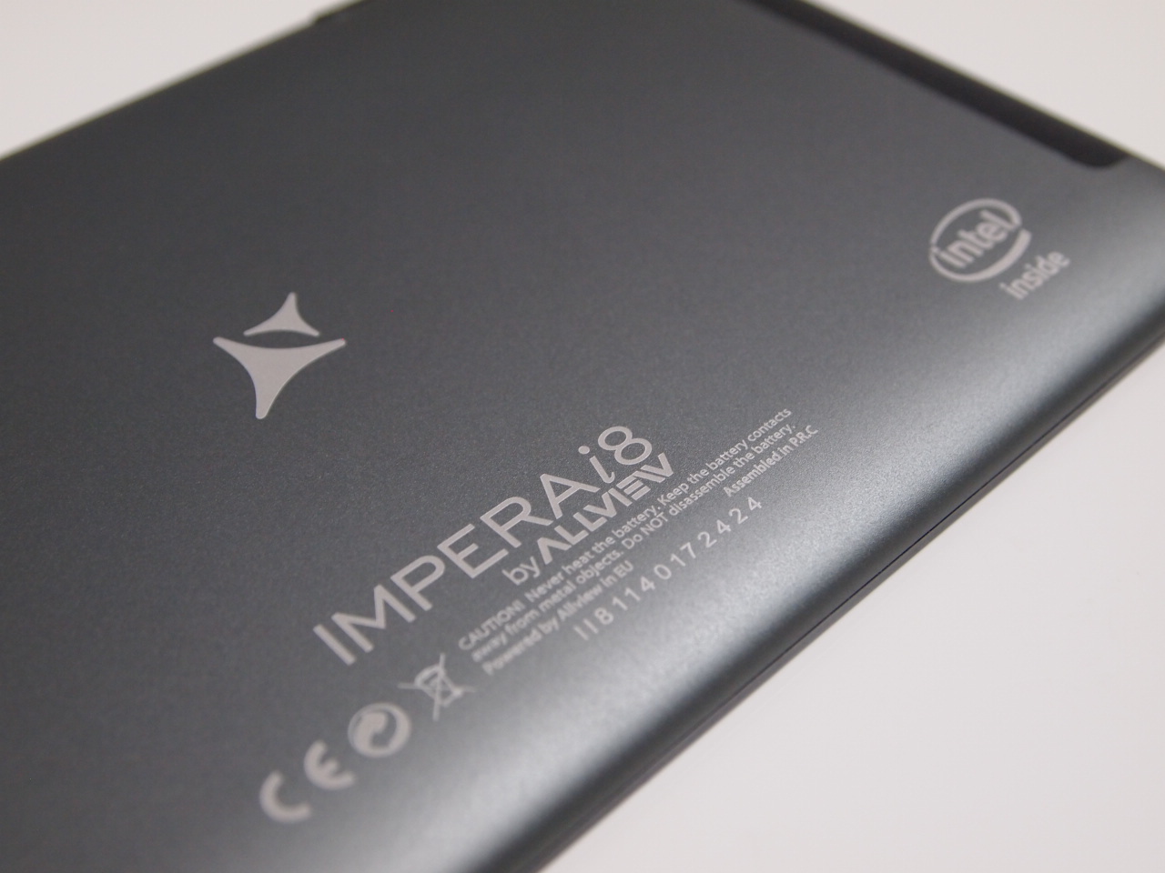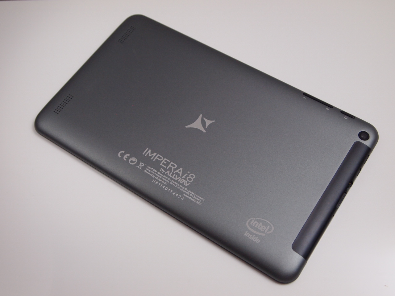 Pe partea din față a lui Allview Impera i8 nu există nici un element de design. Pe spate, în centru se vede logo-ul companiei brașovene, mai jos denumirea tabletei și alte informații. La bază sunt două grile pentru difuzoare, dar doar cea din dreapta adăpostește un speaker.