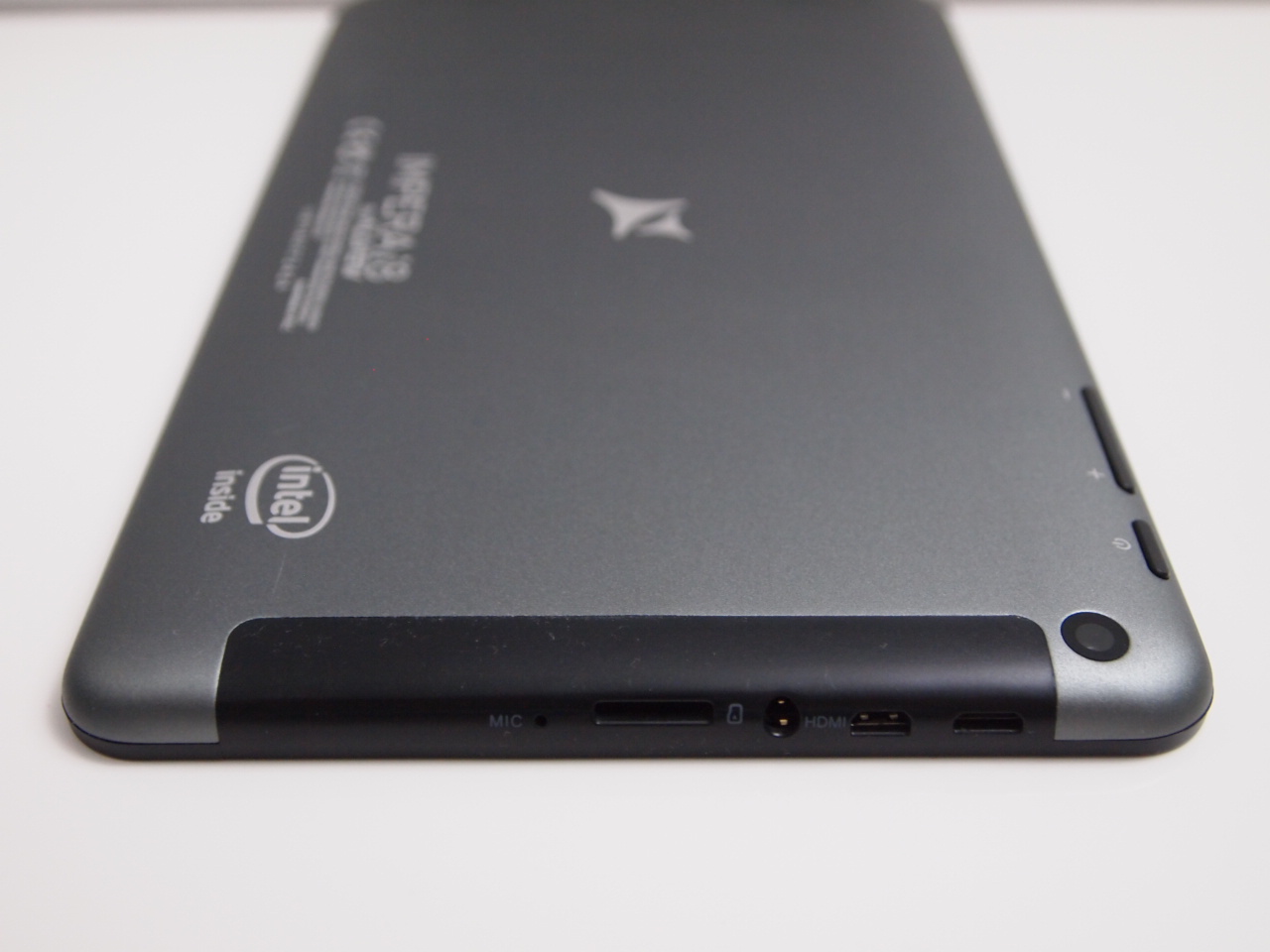 După cum v-am spus la capitolul design, tastele power și pentru volum sunt așezate mai mult pe spatele tabletei, decât pe lateral. În acest fel, elementele de conectivitate se regăsesc grupate doar pe partea de sus a lui Allview Impera i8. Aici, avem de la stânga la dreapta: microfonul, slotul pentru card microSD, jack-ul de 3.5 mm, portul micro HDMI și cel microUSB.