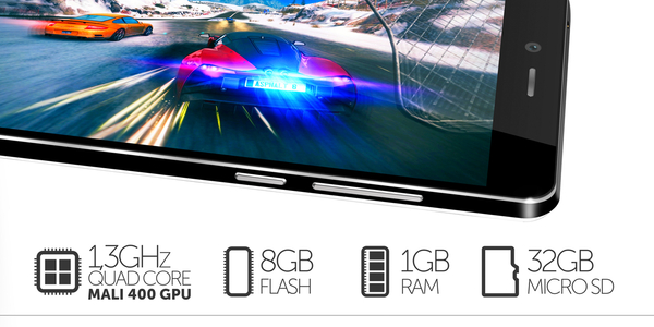 – procesor quad-core MediaTek tactat la 1.3 GHz şi accelerator grafic Mali-400 MP;