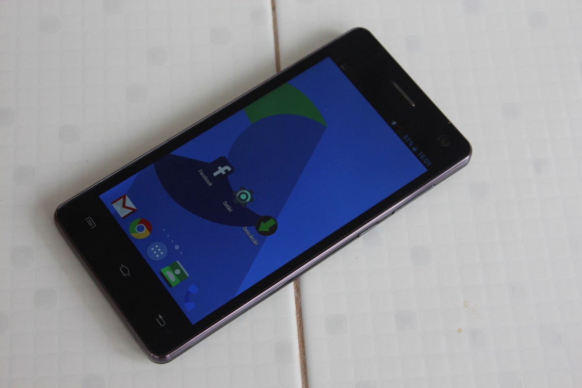 În cutie alături de smartphone regăsiți bateria de 1750 mAh, încărcător pe USB 2.0, cablu microUSB – USB 2.0, căști de tip in-ear albe și cu fir lat, manual de utilizare, certificat de garanție, cod pentru Bitdefender Mobile Security și activarea sa pe o perioadă limitată de timp, folia de protecție este direct poziționată peste ecranul de 5 inch.