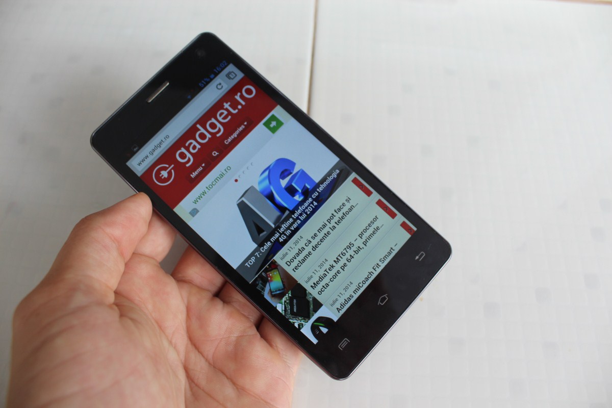 Apreciez capacul mat ce nu adună amprentele și dă un grip foarte bun, mai ales că vorbim de un smartphone generos cu ecran de 5 inch. Cântărește 147 gr. și are o grosime de 8.9 mm, dar mi-a dat impresia de telefon mai mare, marginile laterale cât și cele din partea superioară și inferioară contribuie la a genera o astfel de idee. Totuși, merge a fi folosit cu o singură mână și tasta power + reglarea volumului le puteam atinge fără probleme cu degetul mare.
