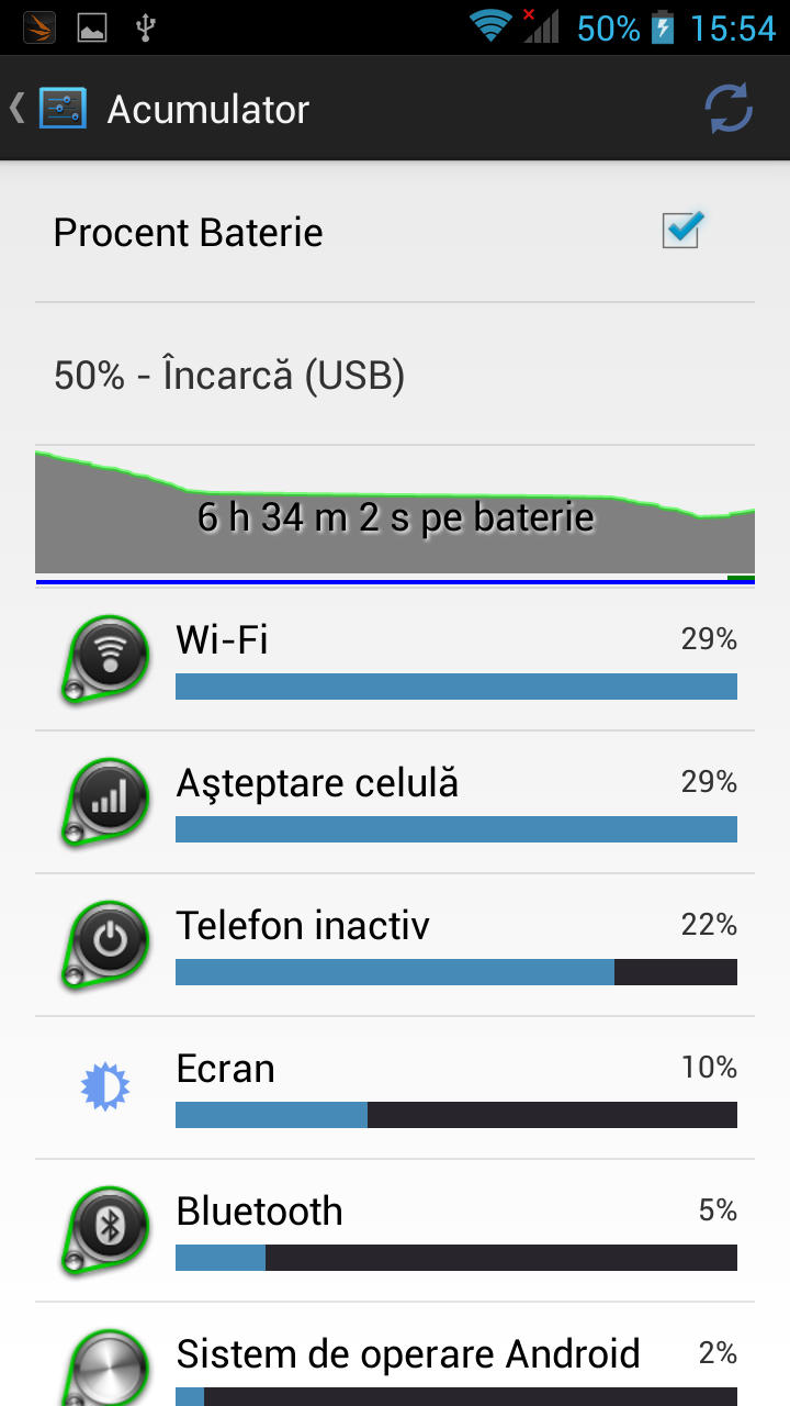 Bateria de 1750 mAh ar trebui să fie un adevărat călcâi al lui Ahile pentru P6 Life, dar s-a descurcat mai bine decât mă așteptam. Rezultatele sunt mai slabe decât la Allview V1 Viper i (display de 4.7 inch vs 5 inch, 540×960 pixeli vs 1280×720 pixeli). Cu luminozitate la maxim și cu toate sincronizările în fundal, gaming, utilizare intensivă și nu reușești a atinge 6 – 7 ore de autonomie. Cu luminozitatea la 50%, fără sincronizări în fundal și folosit ceva mai temperat te duce spre 1 zi, cu greu.