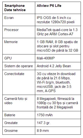 Update: Allview P6 Life a primit Android 4.4 KitKat. Detalii gasiti intr-un articol dedicat