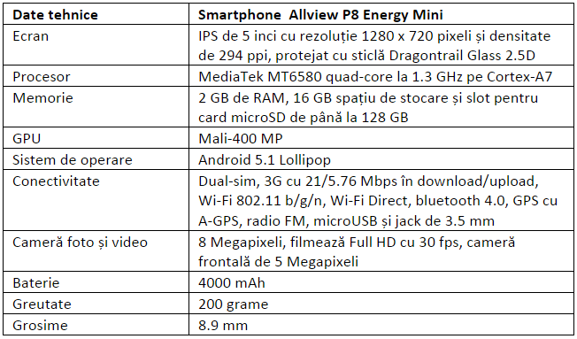Să vedem principalele plusuri și minusuri pentru Allview P8 Energy Mini:
