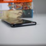 În partea superioară se află difuzorul pentru apeluri. În lateral dreapta dați de butonul de pornire al telefonului și tasta dedicată pentru reglarea volumului. Butonul de power este auriu și au încercat să-l individualizeze cât de cât spre a nu fi confundat cu volumul. La bază se află difuzorul principal, portul USB type-C și jack-ul de 3.5 mm.