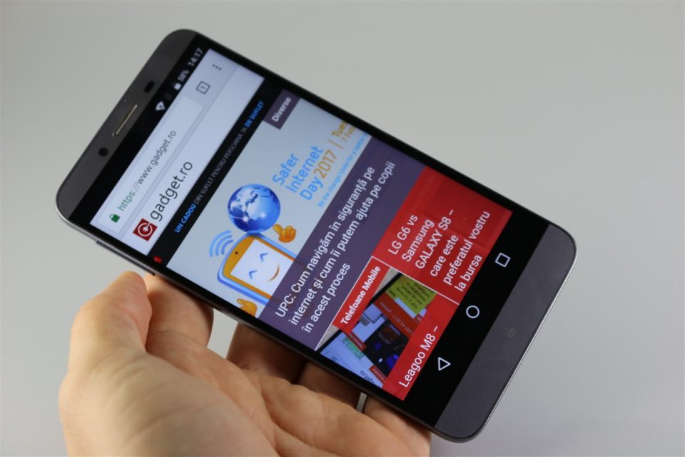 Avem un smartphone destul de compact pentru cei 5.5 inch ai ecranului său, raport display / corp de 76.7%. Pare și mai compact, pentru că avem un design ce-l face să pară că are un display ce se duce spre ambele laturi, oricum – marginile superioară și inferioară sunt destul de compacte față de alte produse concurente.