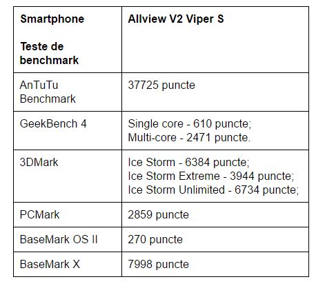 Teste de benchmark rulate pe Allview V2 Viper S;