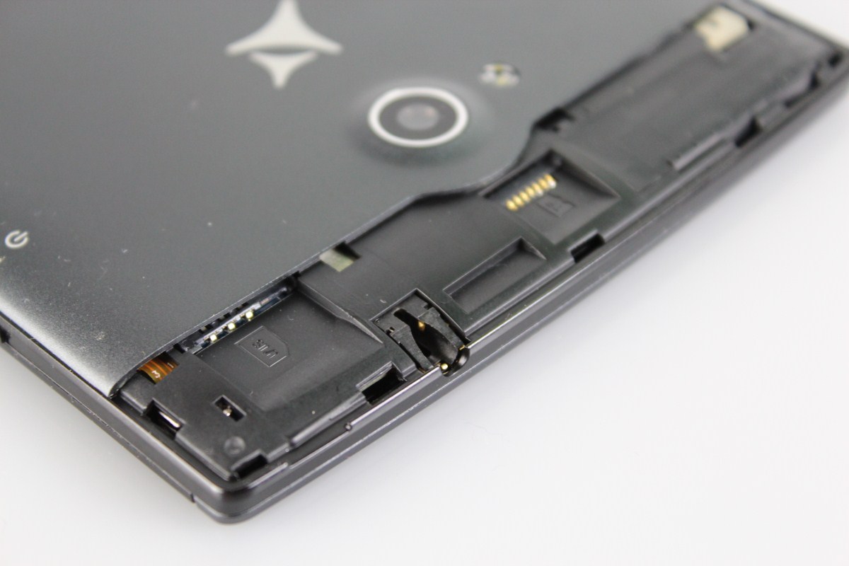 Sigla Allview nu o găsiți în partea frontală ci doar logo-ul stilizat neintruziv pe carcasa spate. Au ales să folosească un capac îngust și sub acesta se află sloturile pentru microSD și SIM-ul de dimensiuni clasice.