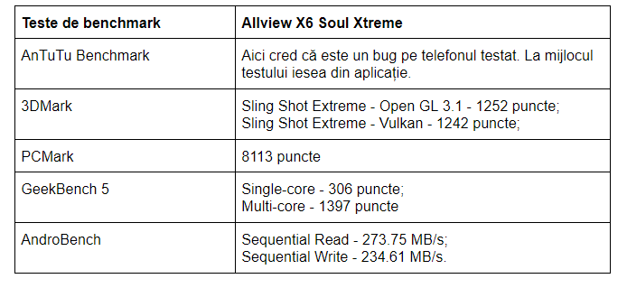 Testele de benchmark rulate pe X6 Soul Xtreme;