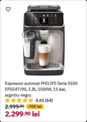- espressor automat Philips Seria 5500 EP5547/90 – 2299.90 lei;