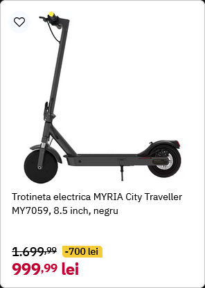 - trotinetă electrică Myria City Traveller MY7059 – 999.99 lei;