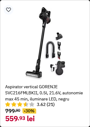 - aspirator vertical Gorenje SVC216FMLBKII – 559.93 lei.