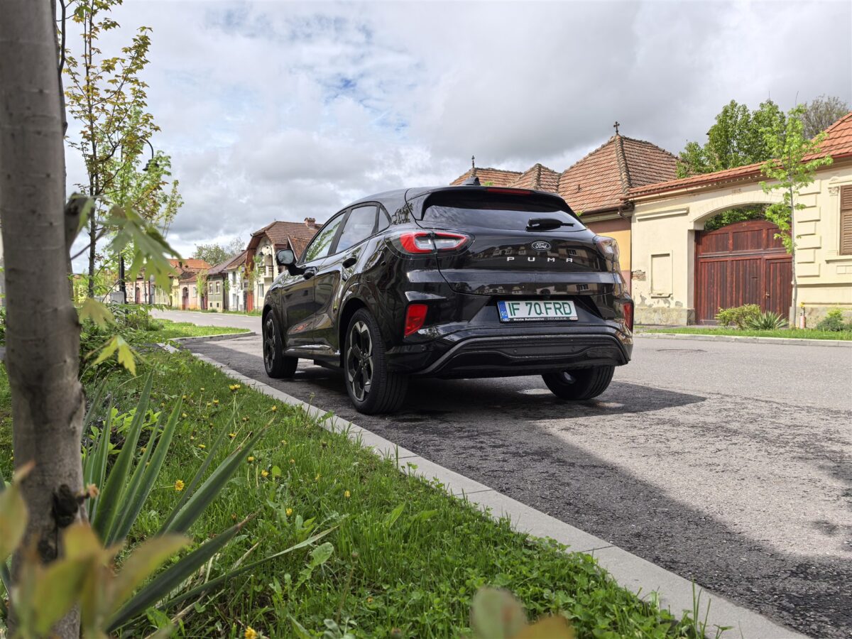Ford Puma Gen-E are o ținută de drum sportivă, cu un tren de rulare ce încearcă să păstreze mereu un contact ferm cu suprafața de rulare. Asta poate însemna că în cazul unui asfalt prin care au mai apărut gropi vei simți neregularitățile destul de bine, fără să mi se pară totuși că avem un comportament deranjant. În afară de gropi, celelalte denivelări de asfalt nu deranjează mai deloc, ba din contră simți că ești mereu în control deplin, deși direcția nu pare cel mai strâns legată de roțile față, să zic așa.