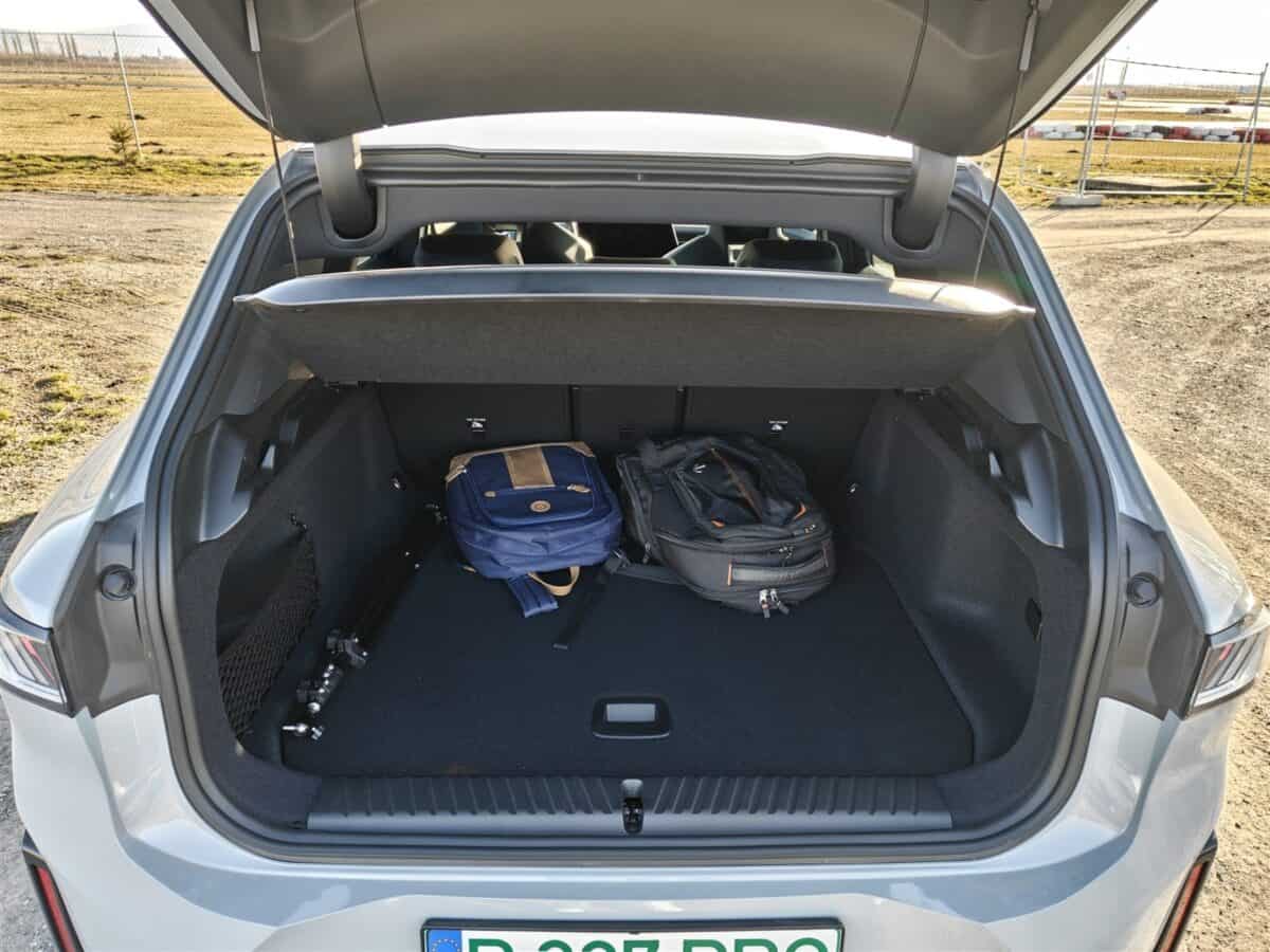 Spațiu este suficient pe orice direcție, cu toate că în cazul meu, la 1.95 m înălțime, mai aveam doar 2 – 3 cm până la plafonul panoramic din sticlă, în poziția de șofer, cu scaunul maxim jos. Pe banchetă mi s-a părut mai bine, cu toate că genunchii sunt o idee mai flexați decât ar fi ideal. Dar asta nu înseamnă că există deficiențe la nivel de spațiu interior, nicidecum.