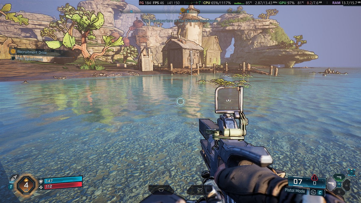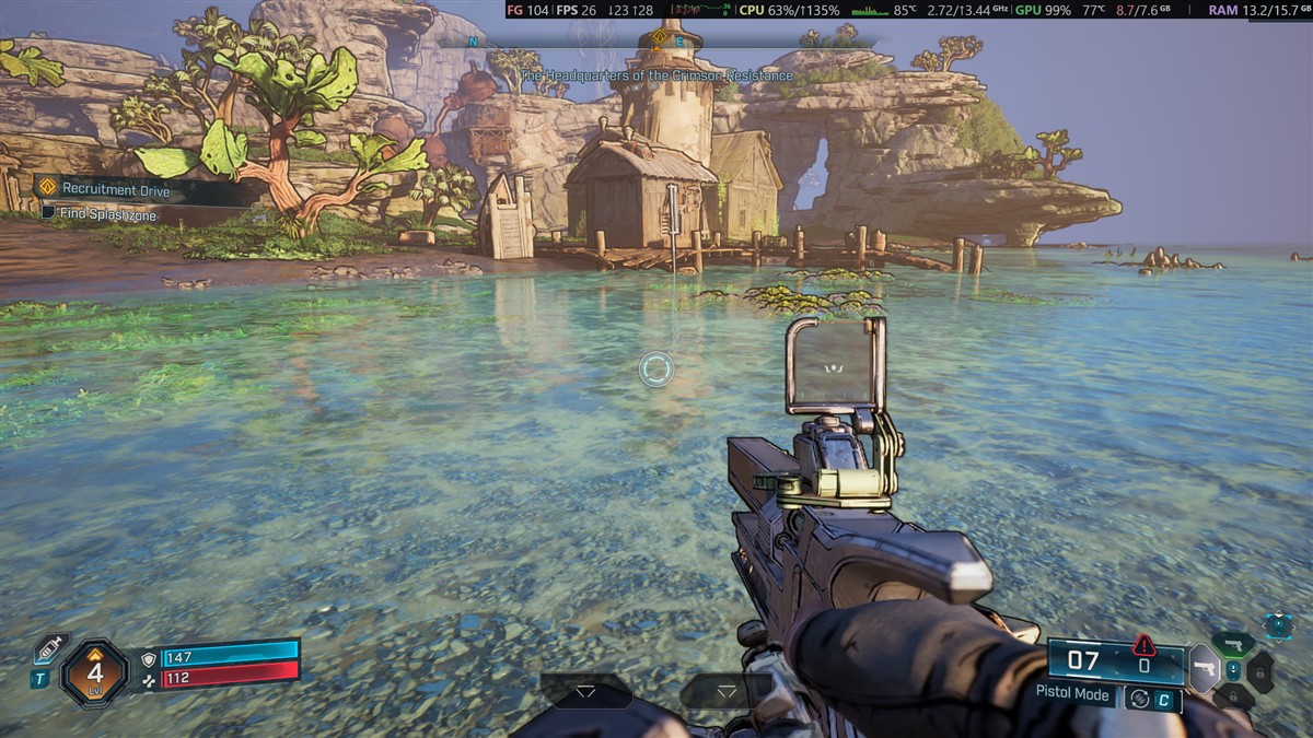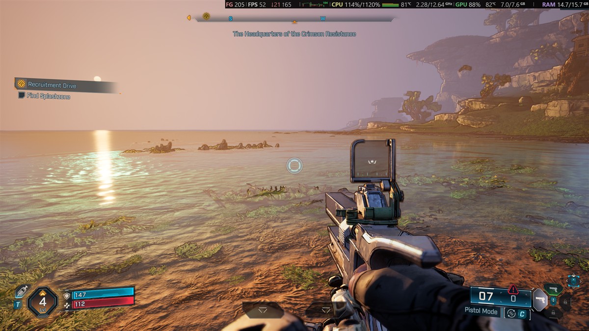 În fine, cam atât cu teoria, cum s-ar spune, hai să vedem cum se aplică toate acestea în Borderlands 4 jucat pe laptopul MSI Katana 15 HX B14W cu grafică NVIDIA GeForce RTX 5060.