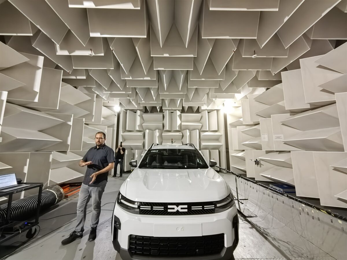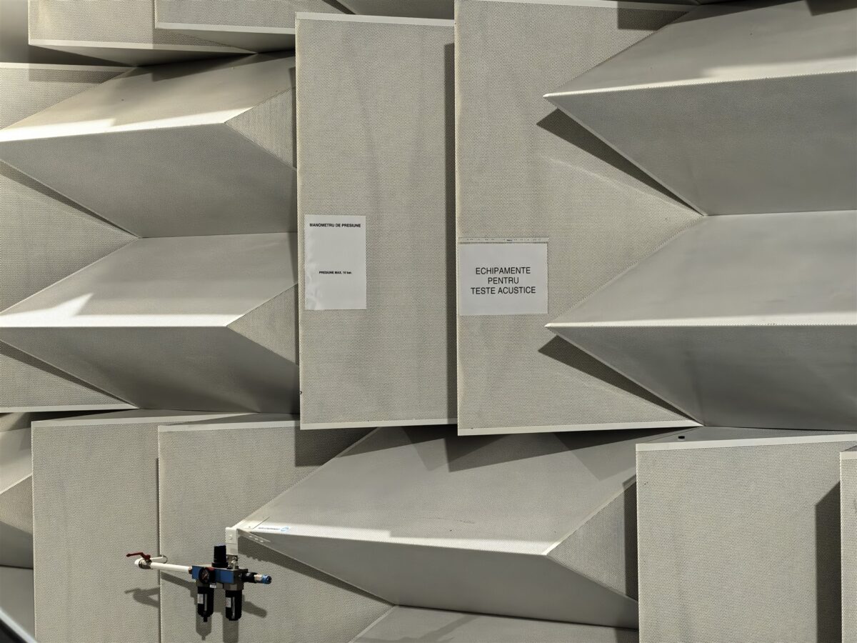După ce am văzut o colecție de automobile Dacia de muzeu, să le numim, 40 la număr, am intrat într-o cameră semi-anecoidă, adică una izolată fonic (aproape) complet față de orice zgomot / sunet din exterior. Este foarte ciudată senzația din această cameră, întrucât urechea și, mai ales, creierul uman sunt nu doar obișnuite cu mult zgomot de fond, dar te simți chiar aiurea când acesta lipsește cu desăvârșire. De fapt, urechea noastră este supusă mereu unei presiuni a diferitelor unde sonore care ne lovesc constant timpanul, așa că normalul pentru noi este acesta, adică cu fel de fel de sunete de fundal pe care le auzim tot timpul. Ei bine, în această cameră lipsește orice fel de presiune sonoră, așa că în doar câteva secunde de la intrare simți o ușoară amețeală. Ciudat…