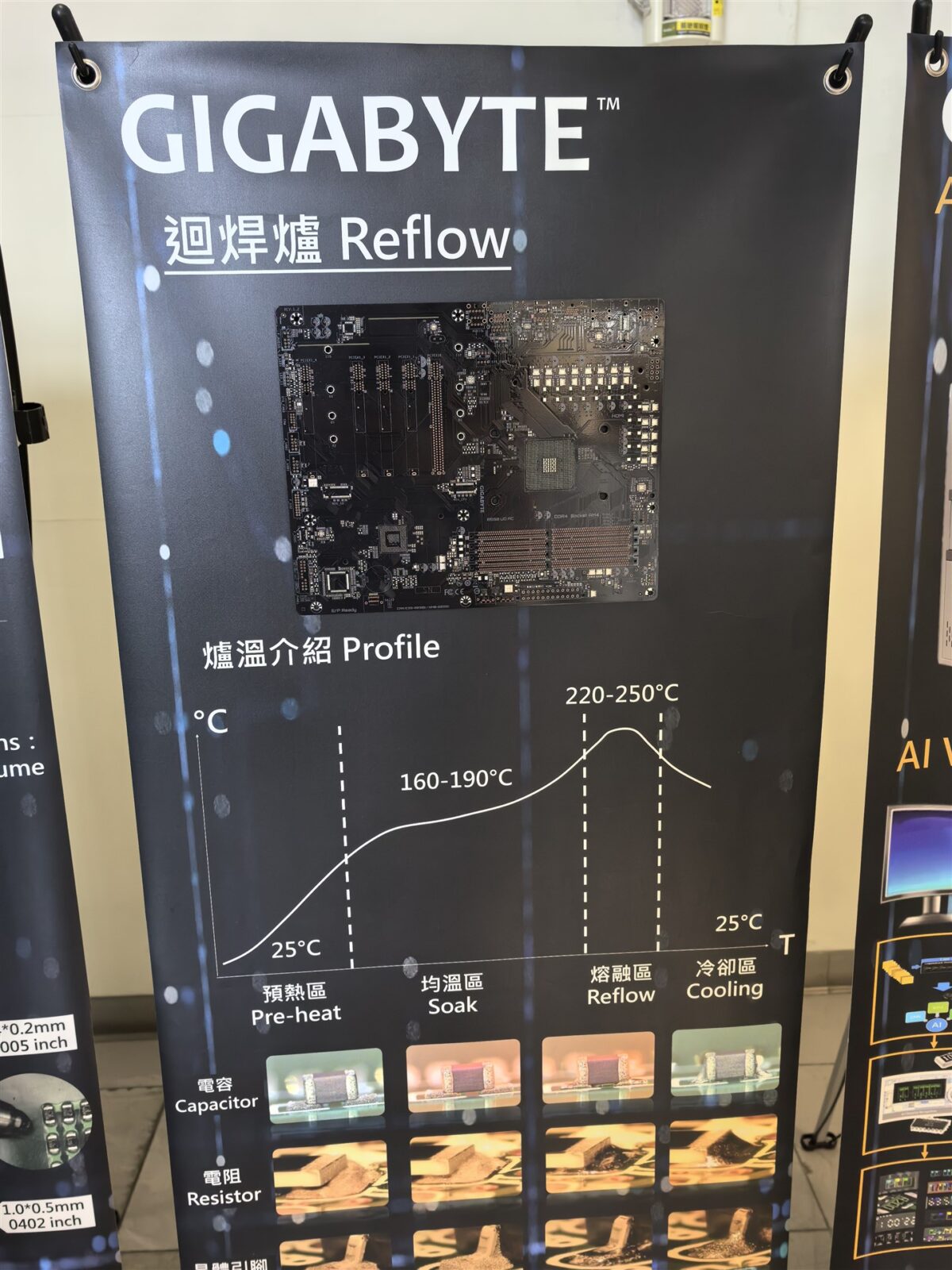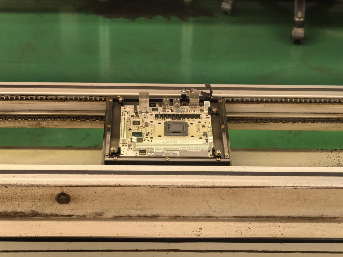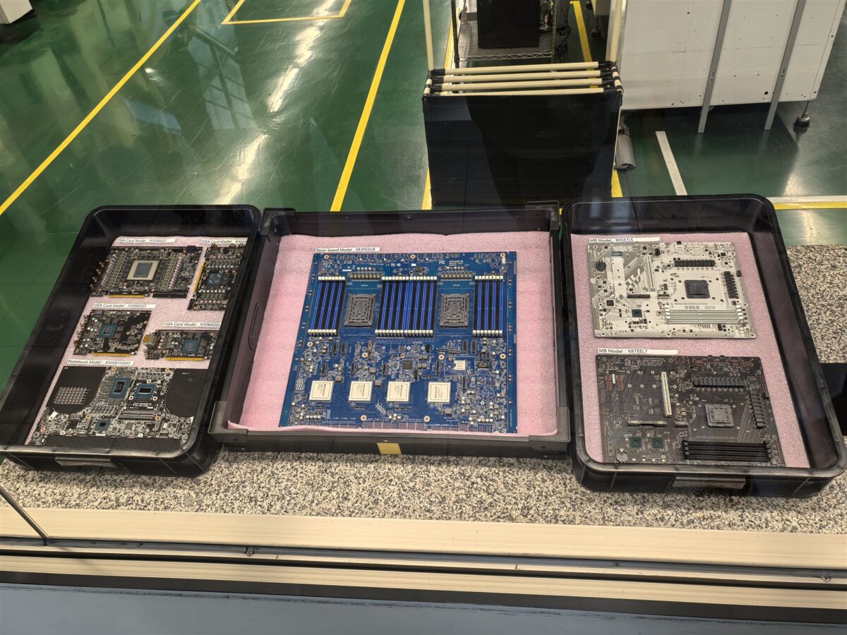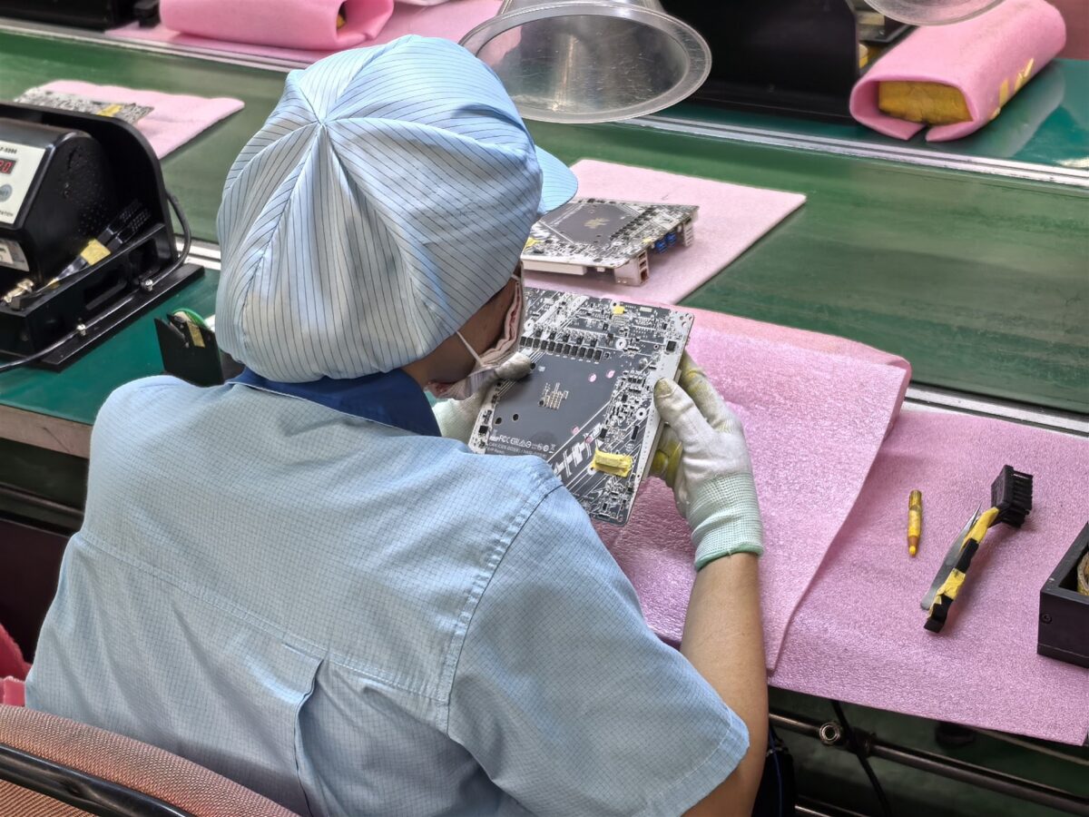 Așadar, circa 85% din producția din Nanping se referă la plăci de bază și plăci grafice, iar procesul de fabricație este cunoscut sub acronimul PCBA – Printed Circuit Board Assembly. Acest proces este organizat în patru etape principale – SMT (Surface Mount Technology) Process, THT (Through-Hole Technology), Test și Packing (ambalare). Mergând mai departe cu descrierea proceselor de producție, SMT este etapizat astfel: Solder Paste Printing, Solder Paste Inspection, Component Placement, Reflow Soldering și Inspection & Test. Apoi, THT urmează pașii: Auto Insertion, Manual Insertion, AOI (Inspecția Optică Automată), Wave Soldering, Solder Side Touchup și Post Assembly.