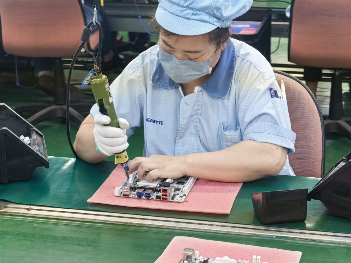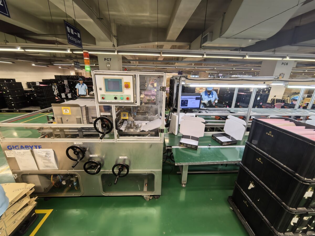 Fabrica GIGABYTE din Nanping a fost deschisă în 2000, aici lucrează momentan în jur de 1.000 de angajați din totalul de circa 7.500 care activează la nivel mondial. Din cei 1.000 de angajați, peste 70% sunt în cadrul GIGABYTE de mai bine de 15 ani, din nou o cifră care mi se pare extrem de interesantă. Aparte de fabrica din Nanping, Taiwan, GIGABYTE mai are două locații de producție, ambele în China – Ning-Bo și Dong-Guan. Fiecare dintre acestea are capacități de producție cu mult mai mari decât fabrica GIGABYTE din Nanping, unde sunt produse lunar în jur de 470.000 unități. Ce înseamnă unități și cum sunt repartizate? Ei bine, de pe liniile de producție ies câte 200.000 de plăci de bază și plăci video, adică 400.000 unități. Apoi, mai sunt produse câte 20.000 de servere, data centere și produse încorporate / IoT, pentru ca restul de 10.000 să fie reprezentate de unități desktop PC și anumite periferice.